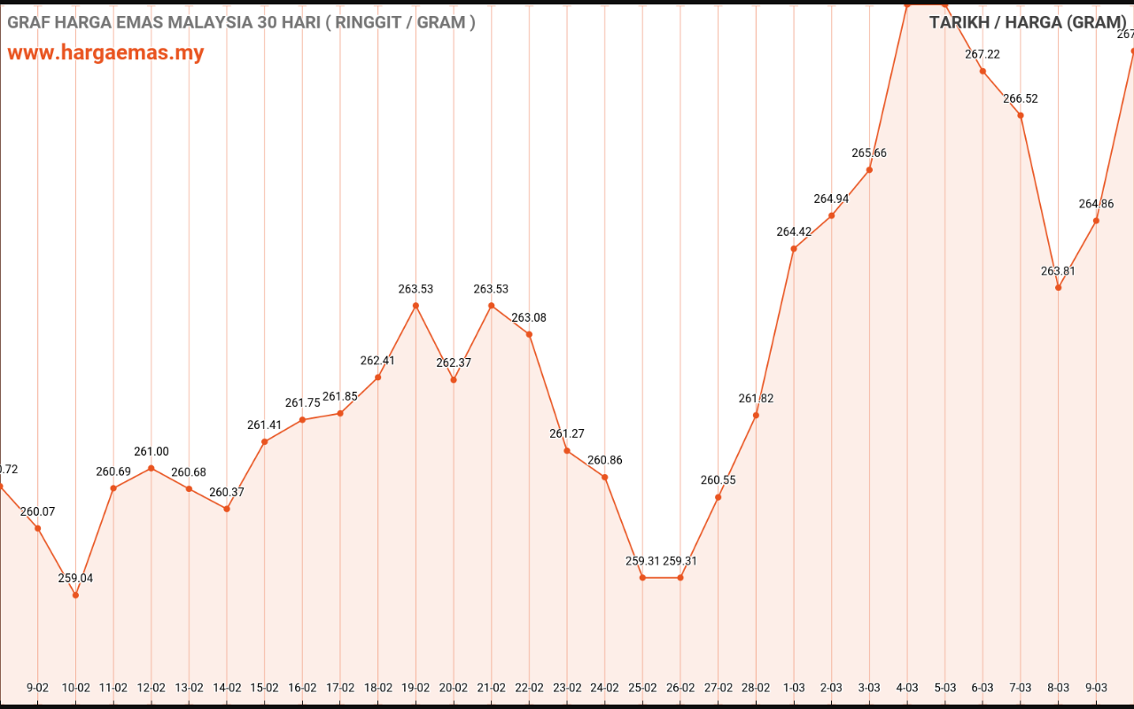 Harga Emas Hari ini 11-3-2023 naik RM272.56