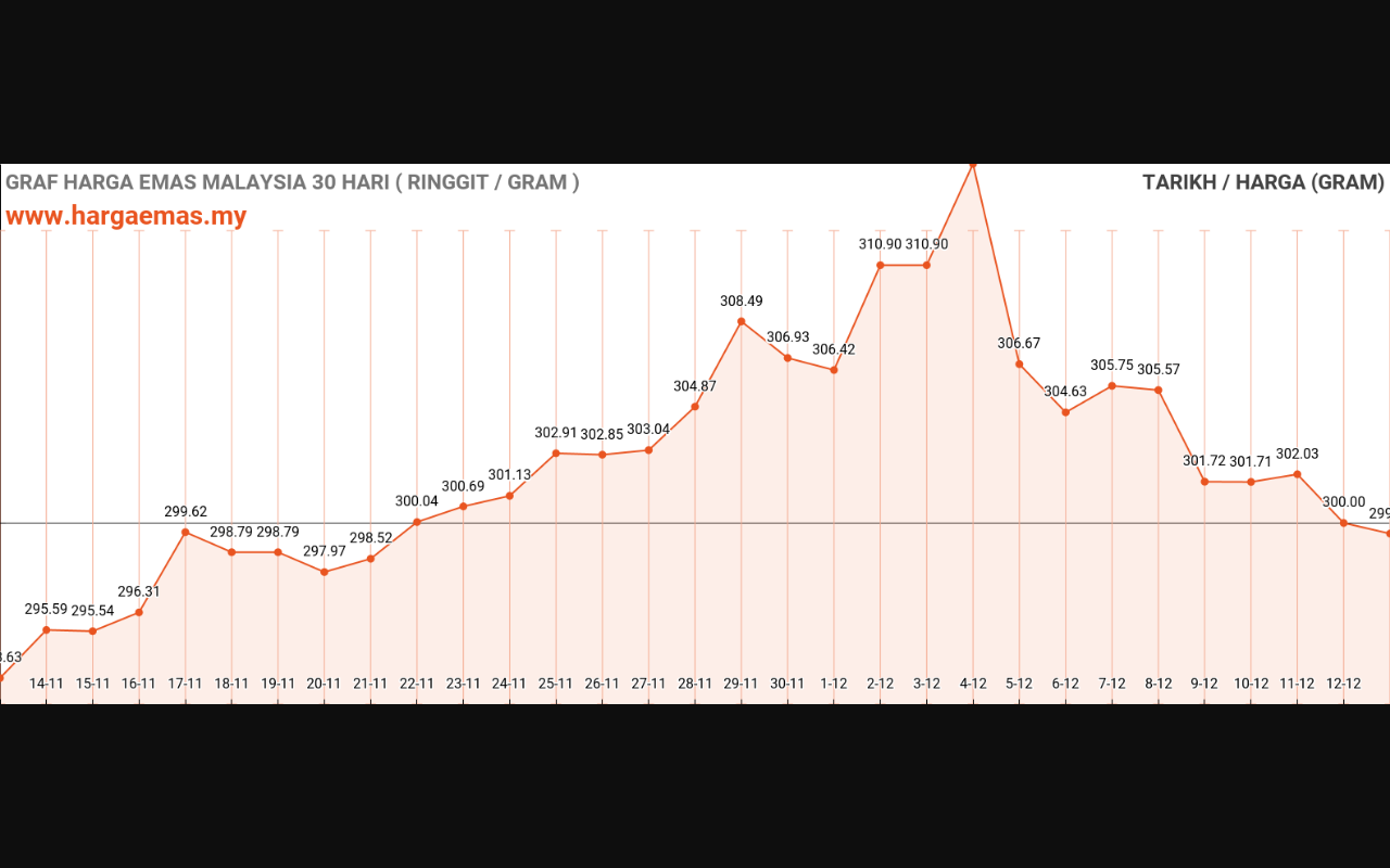 Harga Emas Hari ini 12-12-2023 turun RM299.76