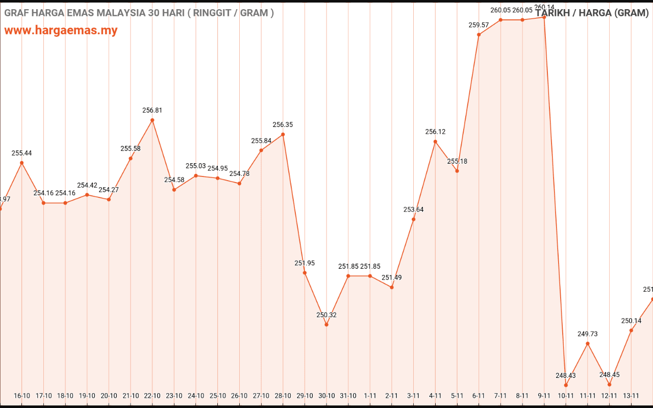 Harga emas hari ini RM251.12 per gram tidak berubah sebanyak RM0 berbanding semalam RM251.12 per gram.