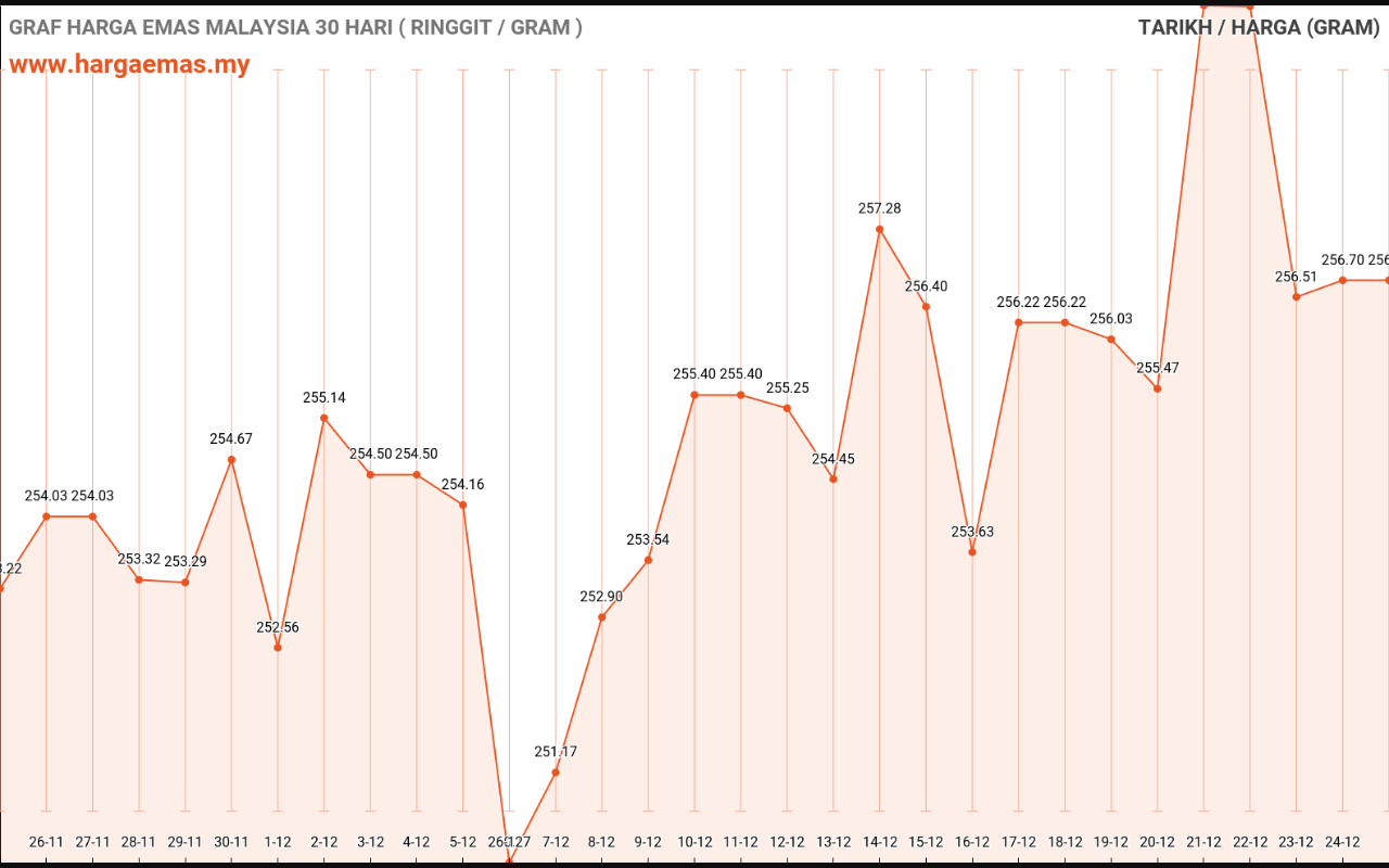 Harga Emas Hari ini 26-12-2022 turun RM256.40