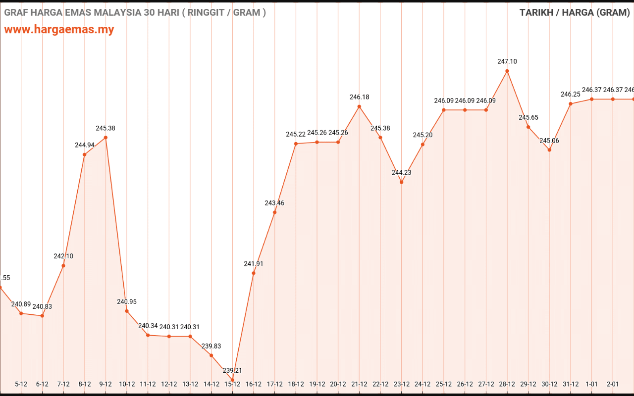 Harga emas hari ini RM247.54 per gram naik sebanyak RM1.17 berbanding semalam RM246.37 per gram.